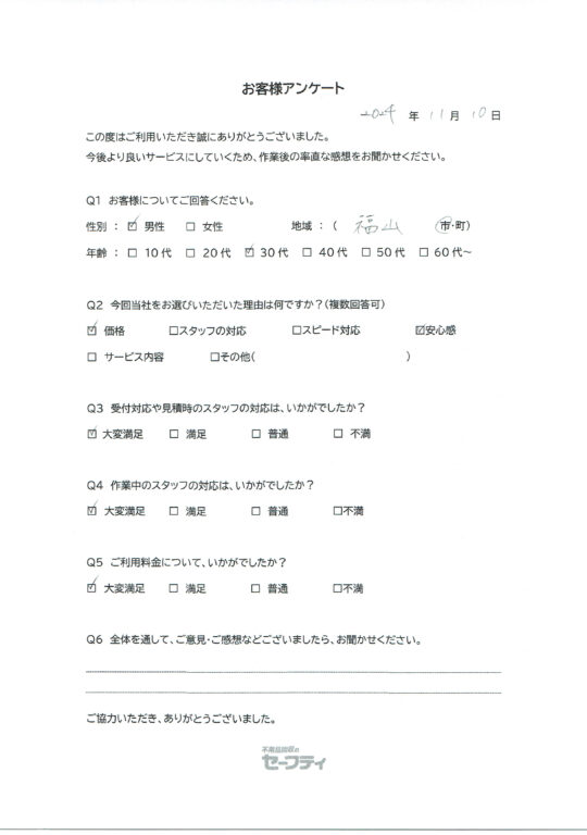 下関市Tさま(不用品回収ご利用のお客様アンケート)