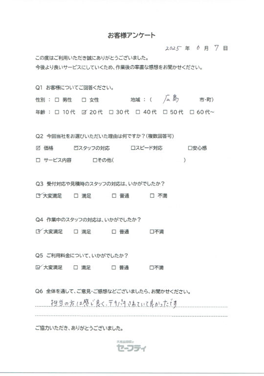 宇部市Wさま(生前整理ご利用のお客様アンケート)
