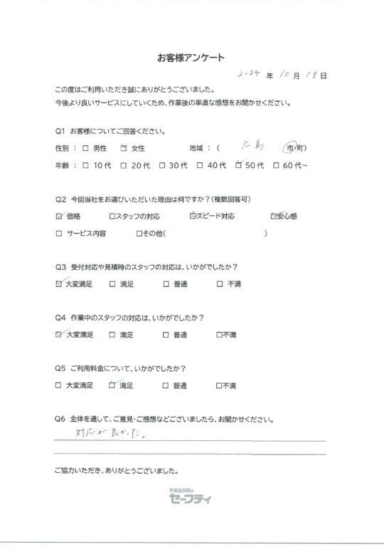 山口市Sさま(引越し前後の回収ご利用のお客様アンケート)