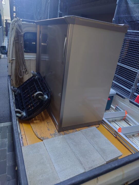 マンションにお住まいで玄関先にスペースがあり、そこへ据えてあるスチール製の物置きの回収依頼を頂きました!